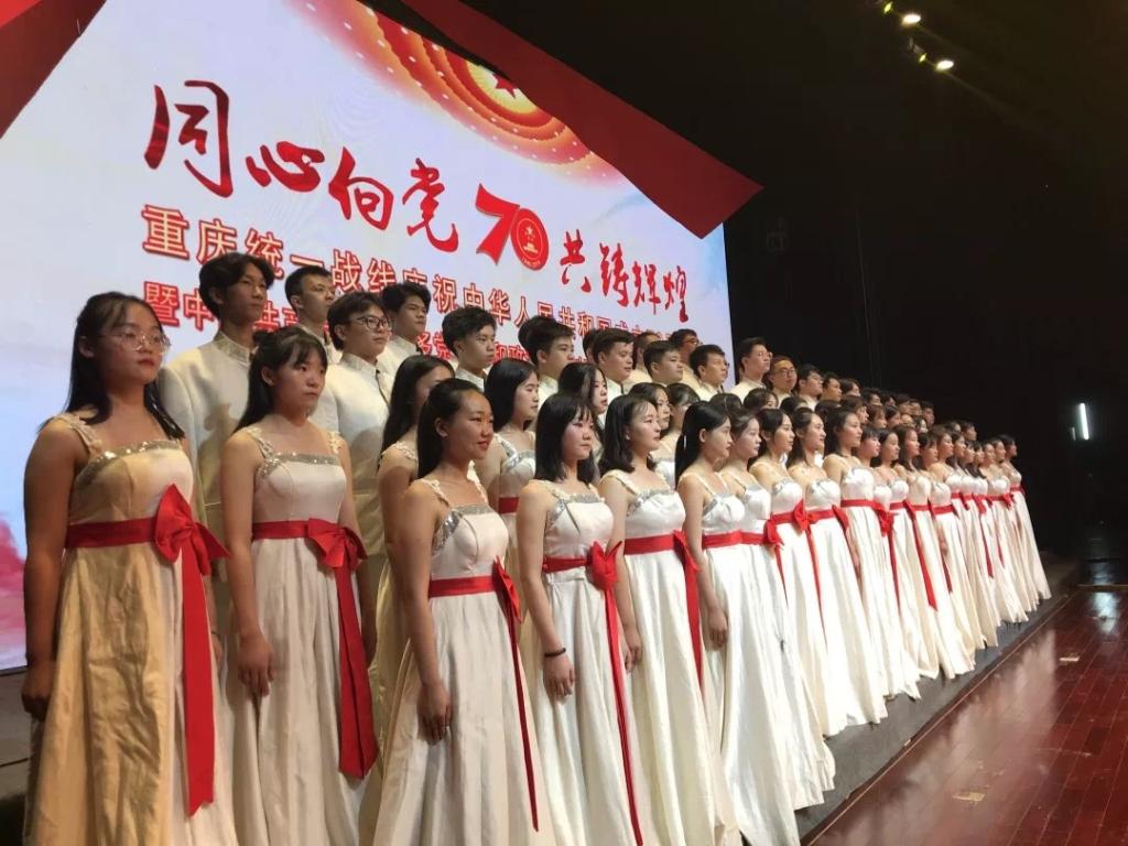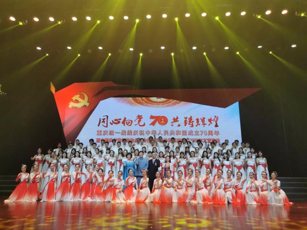 本场演出展示了新时代广大统一战线成员热爱祖国、奋发有为的精神面貌,抒发了广大统一战线成员对中国共产党和伟大祖国的无限感恩之情。民进中央委员、市委副主委、我校音乐学院院长张礼慧教授、重庆大学艺术学院张礼仁教授担纲领唱,以及我校音乐学院丝路合唱团、舞蹈团约100名师生,以朴实而真挚的歌舞——《致祖国》作为压轴节目,向祖国母亲表达了美好的祝福和由衷的敬意,获得了在场领导及观众的一致好评。全市共有3所高校的节目入选晚会。