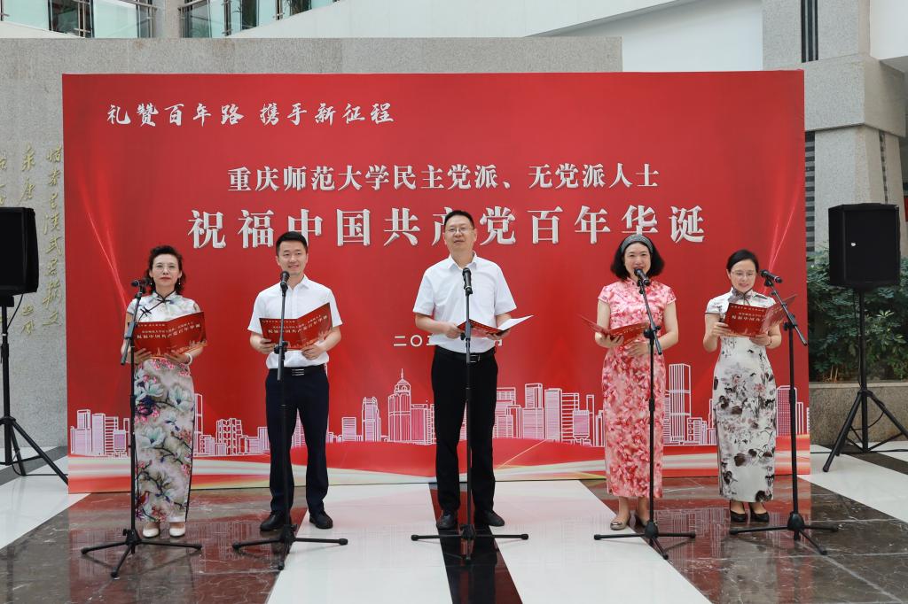本次活动是重师统一战线向中国共产党百年华诞的一次深情献礼。活动中,我校民革、民盟、民建、民进、农工党、致公党、九三学社、无党派人士代表结合自身实际,通过一段段深情的致辞,展示了中国共产党成立100年以来的光辉历程,赞美了社会主义现代化建设的丰硕成果,表达了我校党外知识分子与党同心、风雨同舟,做中国特色社会主义的实践者、维护者、捍卫者的坚定信念。