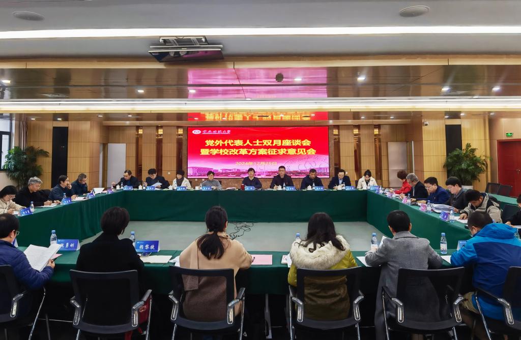 12月25日下午,学校党外代表人士双月座谈会暨学校改革方案征求意见会在博雅楼503会议室召开。校党委书记张艳,校党委副书记、校长王国胤出席会议。会议由校党委副书记周学馨主持。
