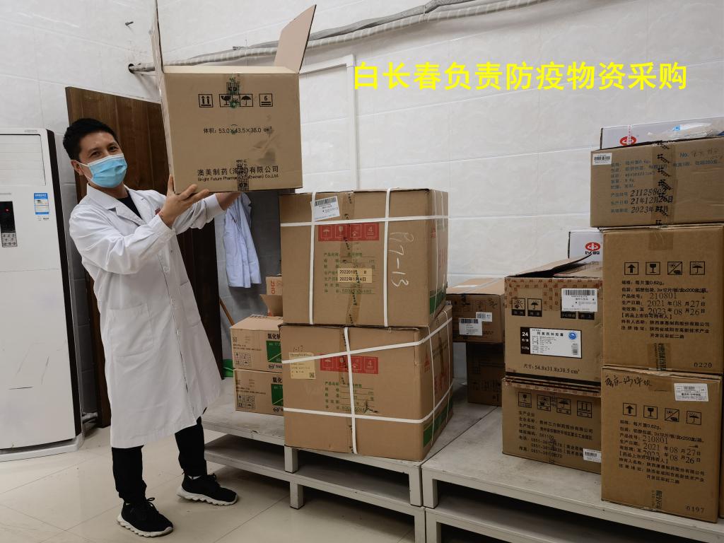 3月11日晚,白长春顾不上家里的孩子和老人,主动请命,紧急加入校园核酸检测一线。自此,他吃住在单位,一直在工作岗位中紧张忙碌。除了日常工作,他还承担起了校医院医疗抗疫物资采购,工作量大,任务紧急,他每天都工作到凌晨,力争把工作做细做实,不出疏漏。
