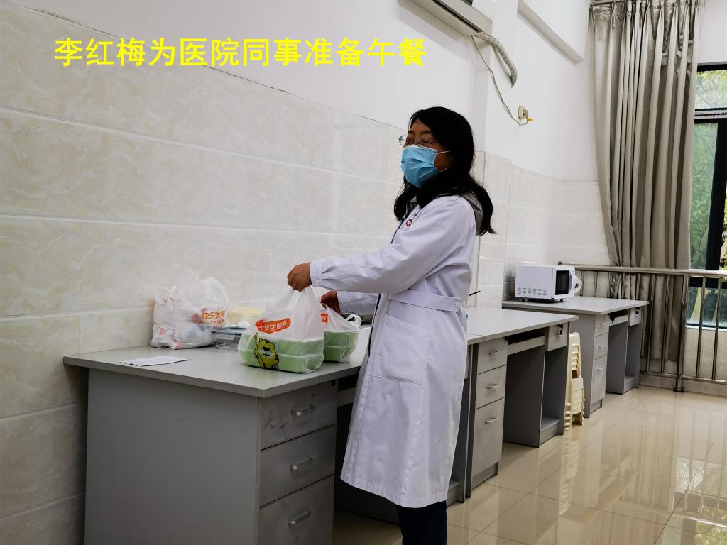 10余天来,李红梅每天一边忙自己的本职工作,一边全心全意为驻守医院的同事们做好后勤保障工作,尽最大的努力满足每位同事的生活需求,时刻关心着大家吃好没有,休息好没有,让大家感受到医院大家庭的温暖。她说病毒无情人有情,能与同事们并肩作战,守望相助,为打赢这场抗疫大战贡献绵薄之力是自己应尽的职责。