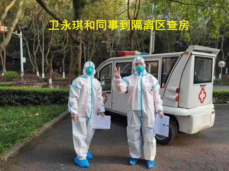 3月11日晚,疫情突来,卫永琪正值当班,医院仅有他和一名护士。当晚,咨询电话连夜不停,发烧、黄码、红码人员需要紧急安排转院,他冲在一线,连续工作22个小时,全然顾不上自己做过甲状腺手术,讲话一多便喉咙沙哑。第二天起,校园启动常态化疾情防控,卫永琪驻守校医院,每天身着防护服工作10小时以上,和另一名医生一起承担了校园门诊全部工作。期间,他家中88岁老母亲生病,他也只能通过校区与家属区的栏栅简单询问,为母亲调整用药。在紧张忙碌的工作中,卫永琪仍然不断思考,结合自身专业优势,围绕疫情防控,及时反映有针对性、建设性的社情民意信息,为医院、学校工作出谋划策,及时解决了封闭期间全校职工及离退休员工的开药问题。