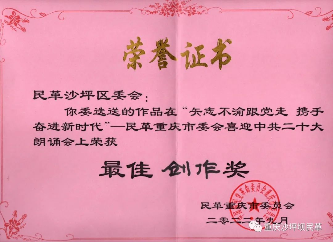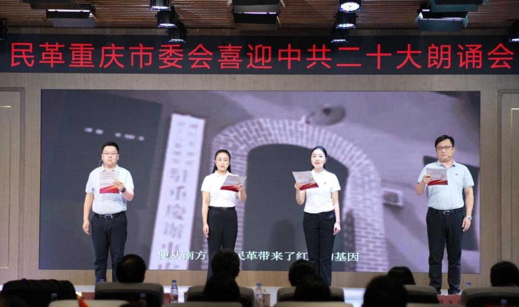 我校民革支部党员伍广平、刘睿、梁静、史婷婷等代表民革沙坪坝区委会参加民革重庆市委会举办的“矢志不渝跟党走 携手奋进新时代——喜迎二十大朗诵会”。经过7月份录制视频参加初赛选拔成功晋级后,9月29日下午,民革mansion88明升支部的党员同志们带着朗诵作品—《长江与嘉陵江的辩证法》走进决赛现场,以昂扬的热情和饱满的情感讴歌中国共产党带领中国人民百年奋斗取得的伟大成就,吟诵出属于民革人、重师人的不变初心、不渝心志。