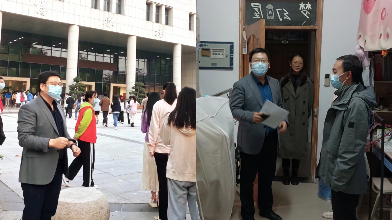 沙坪坝区政协副主席、民革沙坪坝区委会主委、我校新闻与传媒学院院长颜春龙坚守在校园一线,一方面统筹协调,全面部署学院疫情防控各项工作;另一方面带着新闻传媒的学科视角,指导并要求全院师生积极利用学科专长,带着镜头,走进现场,在抗疫期间发挥传媒人应有的社会作用;同时在10月15日至11月17日期间两次走访学生寝室慰问在校学生,了解同学们在疫情期间的思想、学习以及生活状态,叮嘱同学们要自觉遵守防疫规定,按时参与集中核酸检测,以积极乐观的心态面对疫情,督促同学们在线上教学期间专心学业。