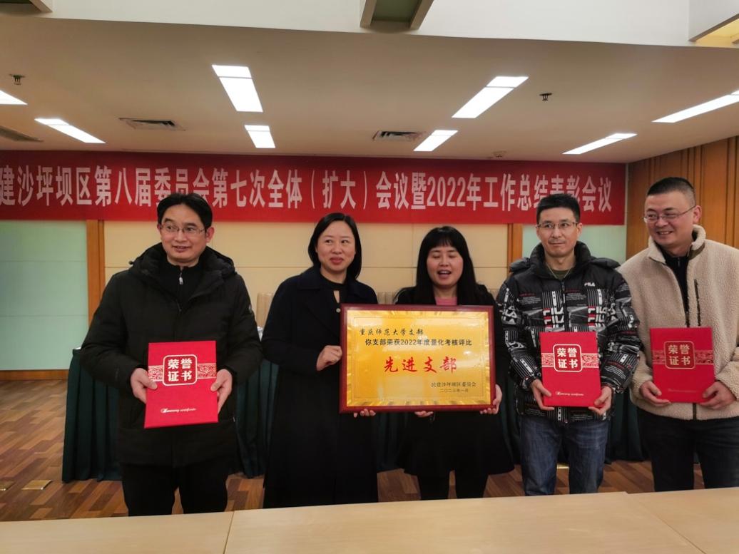2023年1月9日下午,民建重师支部代表参加了民建沙坪坝区委八届七次全委扩大会议暨2022年工作总结表彰会议。重师支部获得民建沙坪坝区先进支部称号,支部副主委李玉平获2022年度民建市委理论研究工作先进个人,支部委员赵清俊获民建沙坪坝区参政议政先进个人,支部委员杨阳获民建沙坪坝区委年度先进个人称号,会员刘智皓、王丽霞获民建沙坪坝区委年度特别贡献奖。
