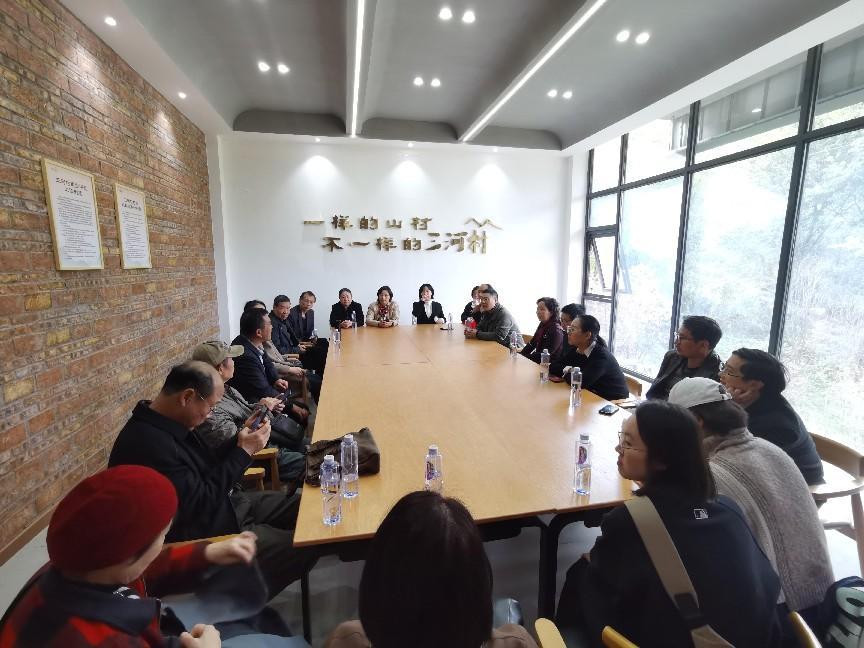 实地考察结束后,区委、重师支社及煤科院支社与三河村村委举办了“乡村振兴”座谈会。座谈会由重师支社主委左金隆同志主持。首先,左金隆同志表达了对三河村“乡村振兴”工作成绩的赞赏,并对本次座谈会的研讨目的做了简要的介绍。其次,三河村村委详细介绍了本村26个产业项目具体发展现状,以及项目运营中面临的客源不稳定、基层干部工作繁重、村民合作意识淡薄等困境。然后,广大社员针对三河村在乡村旅游等系列产业项目落地实施过程中存在的公共基础设施不完善、交通不畅、特色不突出、后续资金缺乏,以及与农民利益联结不紧密等一些问题,与三河村村委展开了热烈的讨论。社员们分别从优化景区顶层设计规划、落实公共交通、建立公共停车区、销售平价农旅文创产品、开展“亲民”农家乐和民宿等方面提出了若干改进建议。最后,区委副主委潘琛琛同志带领广大社员共同学习了2023年全国“两会”精神,并且勉励大家继续为乡村振兴出谋划策、贡献力量。