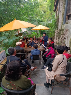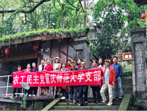 抚今追昔,仰望旧址。一行18名农工党员无不感慨万千,心中激起对先辈艰苦创业、与中国共产党共克时艰的家国情怀的无限敬仰。在旧址台阶下、古树旁,支部党员围坐在一起,支部主委何太蓉和副主委杨捷带领大家一起进行了相关文件的学习,并传达学校统战部近期的系列工作安排,鼓励大家以母校70华诞为契机,不忘合作初心,弘扬优良传统,积极投身学校事业发展,双岗建功,为重庆地方经济社会的发展、为学校高水平综合性师范大学建设做出农工党人的最大贡献,为画出最大同心圆而团结奋斗!