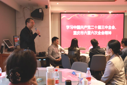 活动第一阶段,民革重师支部主委梁静、民革重医附一院主委税巍首先分别介绍了支部情况和与会党员。随后,民革重师支部委员刘云杰结合新时代重庆发展战略需求和建设目标,提纲挈领带领党员同志们深入领会中共二十届三中全会、重庆市委六届六次全会精神。中共二十届三中全会紧紧围绕推进中国式现代化主题,聚焦“六个必然要求”和“四个迫切需要”,取得了重要的实践成果、理论成果和制度成果,在改革发展新阶段具有里程碑意义,学习贯彻好全会精神是当前和今后一个时期的一项重大政治任务。市委六届六次全会对标党中央决策部署,牢记习近平总书记殷殷嘱托,紧扣“奋力谱写中国式现代化重庆篇章”总纲领总遵循,围绕做实“两大定位”、发挥“三个作用”、建设“六个区”等作出部署安排,充分体现了“总书记有号令、党中央有部署,重庆见行动”。集体学习后,与会党员充分发言、积极交流。